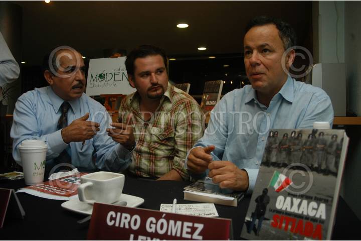 MÉXICO D.F. 10JULIO2007.-El periodista Diego Osorno, acompañado de Mario Marín y Ciro Gómez Leyva realizó la presentación de su nuevo libro titulado "Oaxaca Sitiada la Primera Insurrección del Siglo XXI". FOTO: GUILLERMO PEREA/CUARTOSCURO.COM