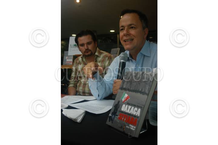 MÉXICO D.F. 10JULIO2007.-El periodista Diego Osorno, acompañado de Ciro Gómez Leyva realizó la presentación de su nuevo libro titulado "Oaxaca Sitiada la Primera Insurrección del Siglo XXI". FOTO: GUILLERMO PEREA/CUARTOSCURO.COM