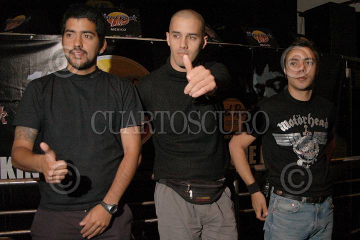 MÉXICO, D.F. 08NOVIEMBRE2005.- Leonardo De Cecco, batería; Ciro Pertusi, voy guitarra y Luciano Scaglione, bajo y voz; integrantes de la banda, argentina, de Punk Rock Ataque 77 dio una conferencia de prensa previo a su concierto del próximo viernes donde presentará su nuevo disco titulado Antihumano. FOTO: Miriam Sánchez/CUARTOSCURO.COM