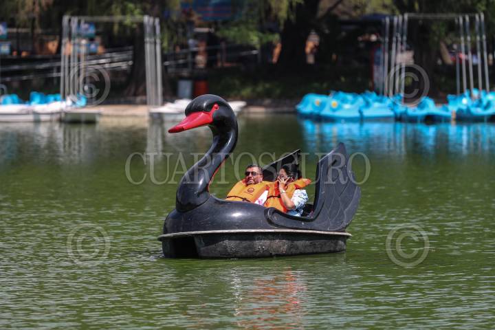 CIUDAD DE MÉXICO 05 DE MARZO DE 2019 - Una pareja pasea en una lancha de cisne en el lago del Bosque de Chapultepec para refrescarse luego de que se registrara una temperatura de 24 grados. FOTO: ANAHÍ GARCÍA/CUARTOSCURO.COM