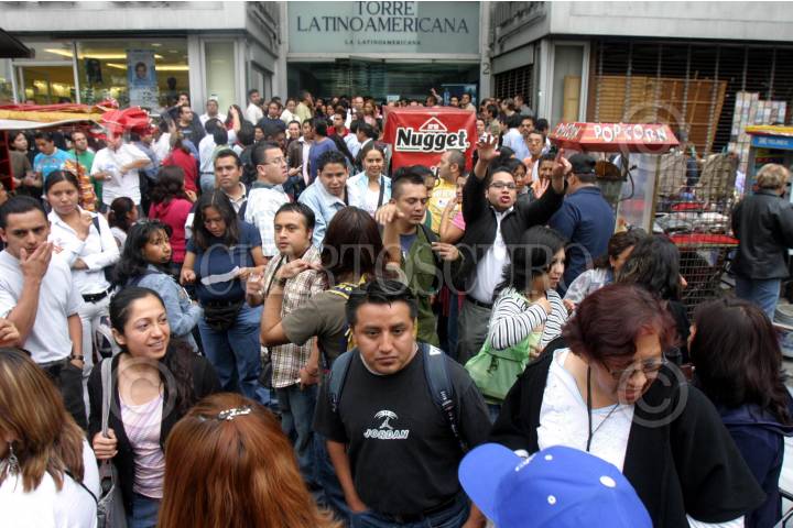 MÈXICO,D.F.27ABRIL2007.-Mas de 100 empleados de la empresa de telemarketing Citel S.A. (ventas por telefono) y que sus oficinas se ubican en la torre latinoamericana, fueron despedidos, segun ellos, sin aviso ni liquidacion, por lo que bloquearon por momentos la circulacion vial del Eje Central.en protesta. FOTO PEDRO MARRUFO/CUARTOSCURO.COM