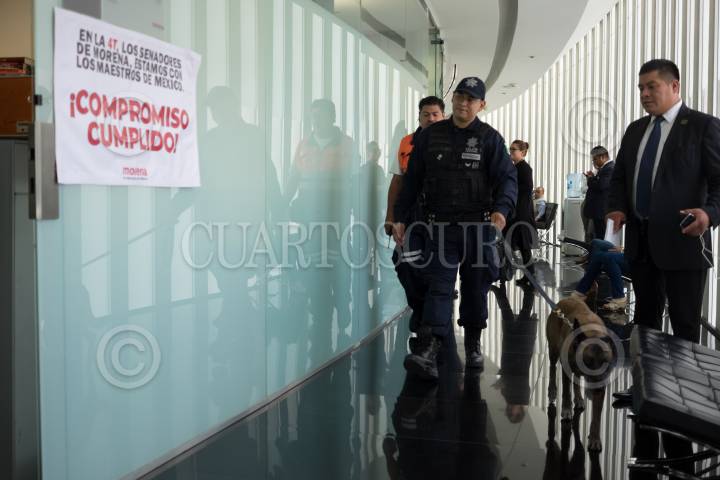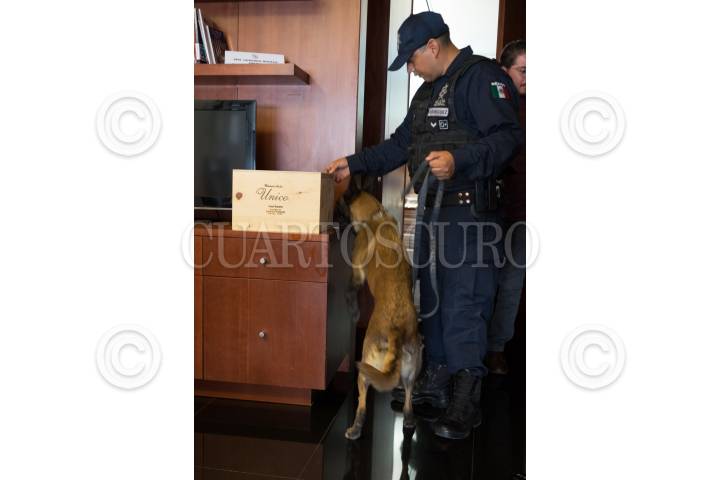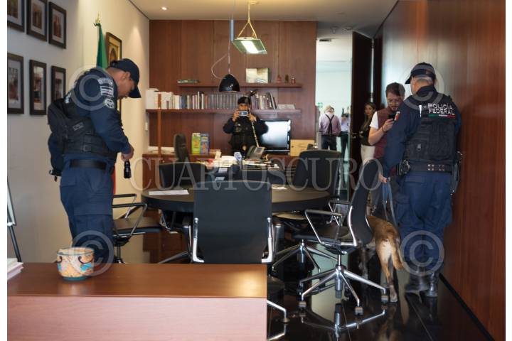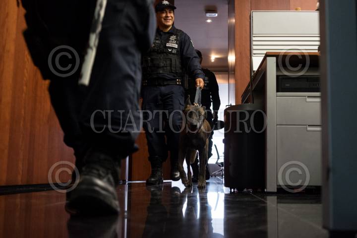 CIUDAD DE MÉXICO, 30MAYO2019.- Un escuadrón antibomba de la Policía Federal realizaron una revisión en las oficinas de los senadores, apoyados de perros especialistas en detectar explosivos, esto luego de que el día de ayer la senadora Citlalli Hernández abriera un supuesto libro y este detonará cuando se encontraba en su oficina, la morenista solo fue atendida por heridas leves. El día de hoy se reforzaron las medidas de seguridad en todo el Senado, en las entradas se revisaban todos los paquetes y mochilas de los que ingresaban. El operativo también incluyó un recorrido por el estacionamiento. FOTO: GRACIELA LÓPEZ /CUARTOSCURO.COM