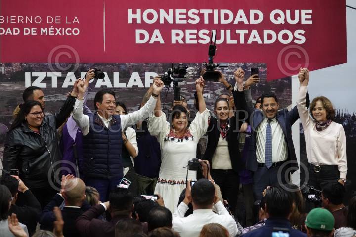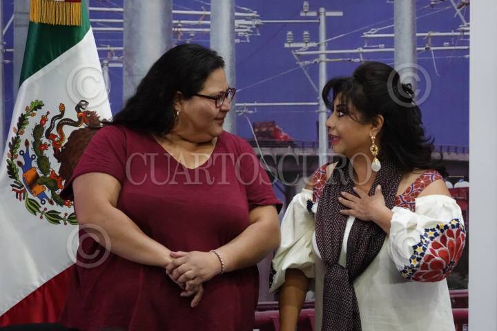 Citlali Hernández, secretaria del partido de Morena, y Clara Brugada, alcaldesa de Iztapalapa, conversaron durante el Informe de Resultados en la Macroplaza de la alcaldía Iztapalapa