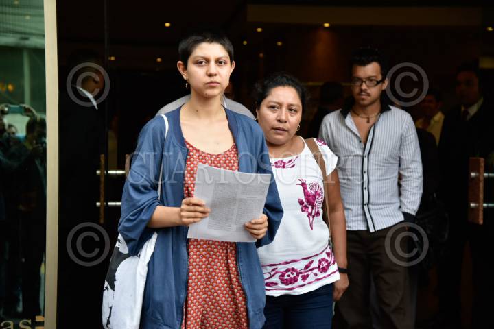 CIUDAD DE MÉXICO, 08AGOSTO2017.- Citlalli, hija de Eduardo del Río, "Rius", quien falleció el día de hoy, salió del funeral para leer una carta a los medios de comunicación sobre la muerte de su padre. FOTO: MARIO JASSO /CUARTOSCURO.COM