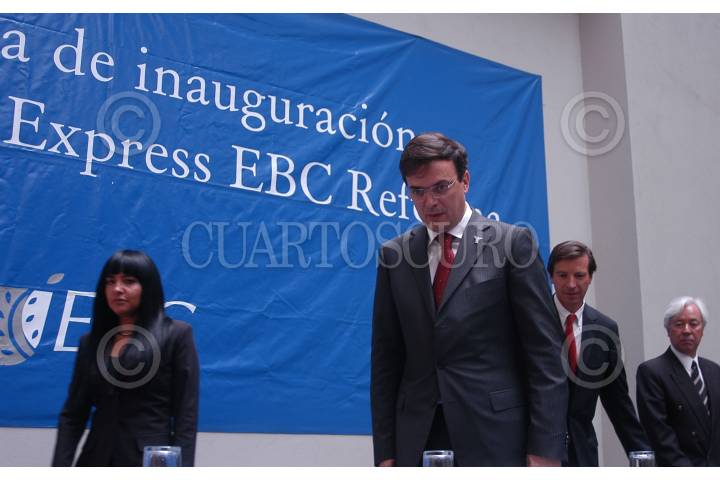 MÉXICO D.F. 09MERZO2007.- El jefe de gobierno capitalino Marcelo Ebrad Casaubon, acompañado de Javier Prieto Sirra rector de la escuela Bancaria Comercial EBC y de Luis Barrios director general de hoteles CityExpress durante la inauguración de uno de los hoteles en la Zona Rosa. FOTO: GUILLERMO PEREA/CUARTOSCURO.COM