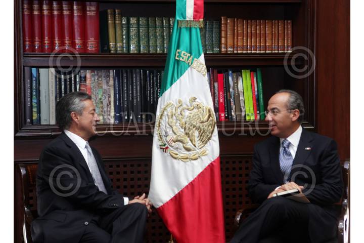 MÉXICO, D.F., 12ENERO2010.- El presidente de los Estados Unidos Mexicanos, Lic. Felipe de Jesús Calderón Hinojosa, recibió, en la residencia oficial de Los Pinos, al nuevo director ejecutivo de Banca de Consumo para las Américas y presidente del consejo global de la banca de consumo de CITYGROUP, Manuel Medina Mora. FOTO: ALFREDO GUERRERO/CUARTOSCURO.COM