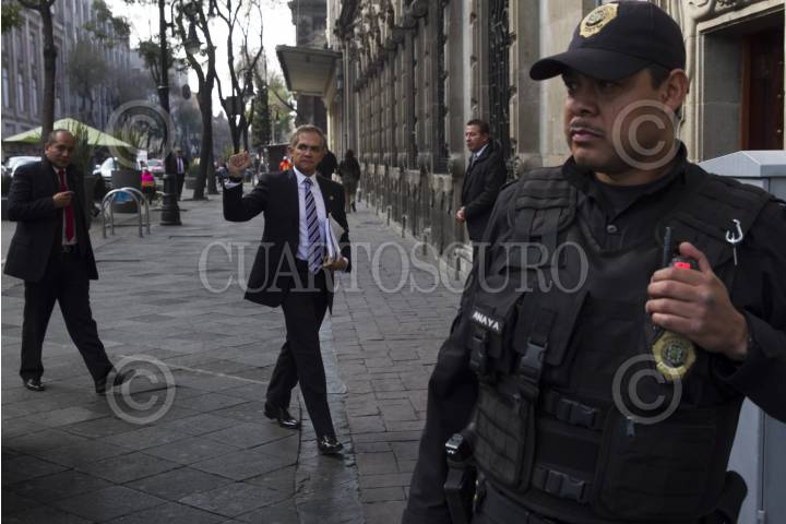 CIUDAD DE MÉXICO, 19ENERO2017.- Miguel Ángel Mancera, Jefe de Gobierno, llega al Palacio del Ayuntamiento bajo el resguardo policial. FOTO: MOISÉS PABLO /CUARTOSCURO.COM