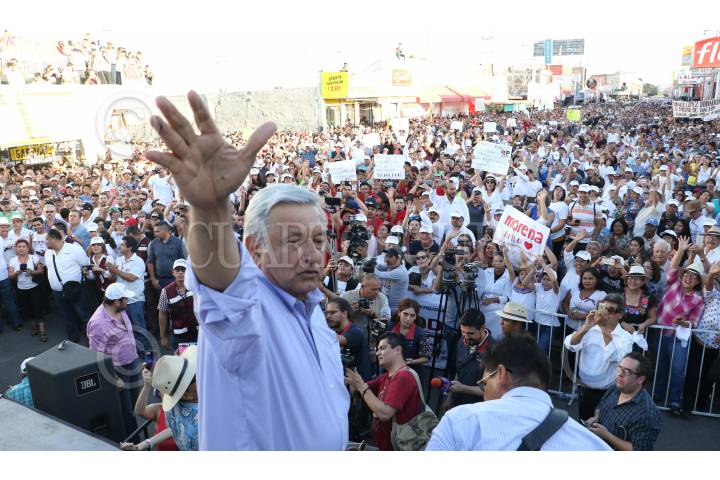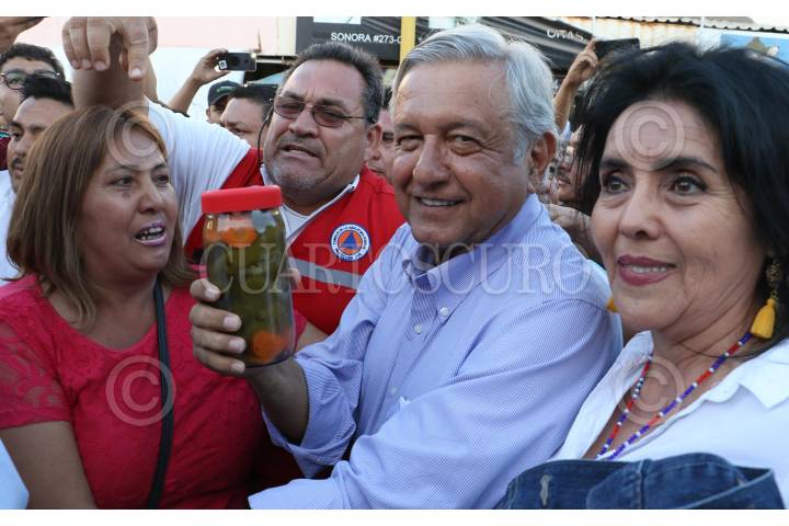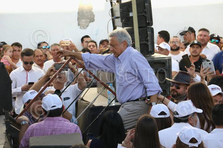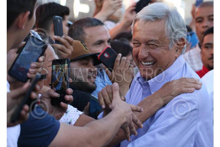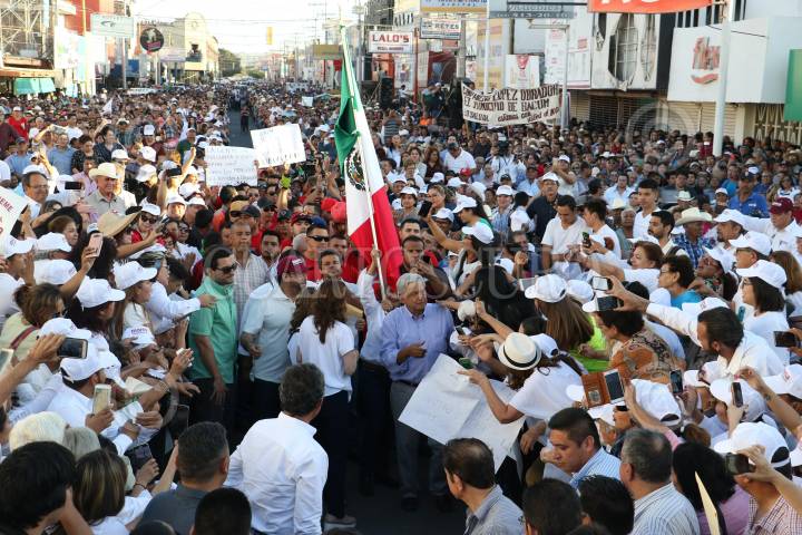 CIUDAD OBREGÓN, SONORA, 17ABRIL2018.- Andrés Manuel Lopez Obrador, candidato de MORENA a la presidencia de republica visito el centro historico de Ciudad Obregón donde realizo un mitin para dar a conocer sus propuestas en caso de ganar la presidencia. FOTO: SAÚL LÓPEZ / CUARTOSCURO.COM