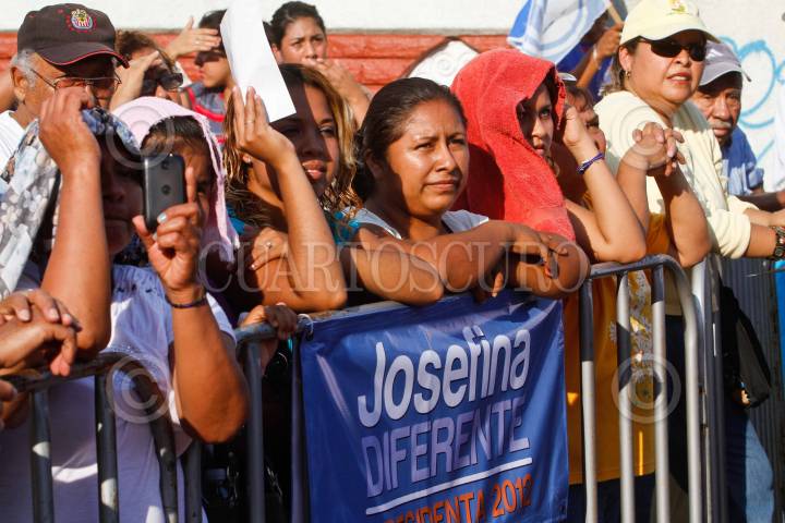 CIUDAD VALLES, SAN LUIS POTOSÍ, 20ABRIL2012.- A pesar del calor, cientos de personas acudieron a escuchar a Josefina Vázquez Mota, candidata a la Presidencia de la República por el Partido Acción Nacional, quien encabezó un mitin proselitista en este municipio. FOTO: ISAAC ESQUIVEL /CUARTOSCURO.COM