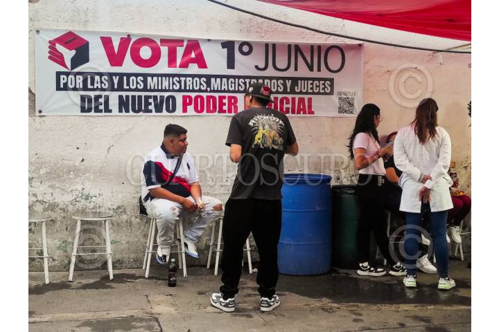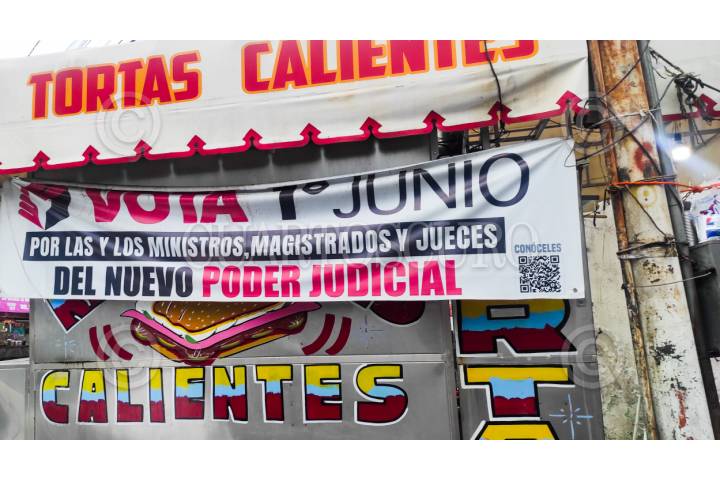 CIUDAD DE MÉXICO. 24MAYO2025.- Regresan los rótulos en los puestos de comida en la alcaldía Cuauhtémoc y así también la invitación. La ciudadanía que esté próximo 1 de junio se vote por magistrados, jueces y ministros del Poder Judicial. FOTO: VICTORIA VALTIERRA/CUARTOSCURO.COM