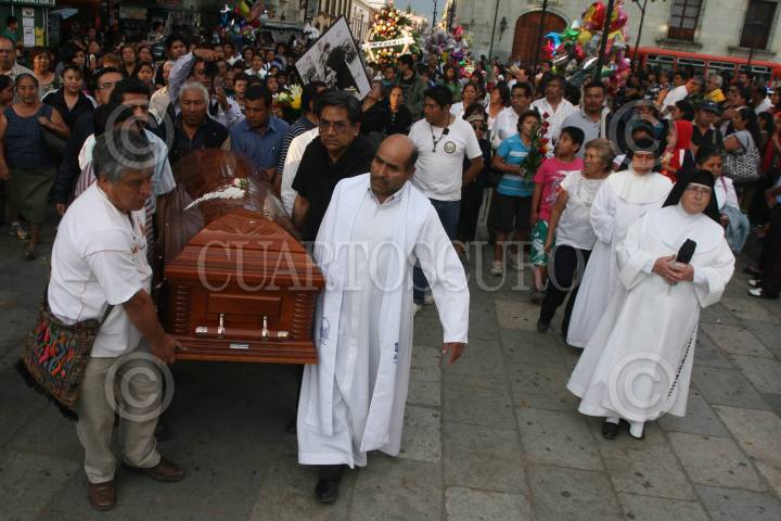 OAXACA, OAXACA, 27OCTUBRE2012.- Los restos mortales del padre José Miguel Pérez García, fundador de la Ciudad de los Niños, fueron trasladados a la Catedral Metropolitana donde se ofreció una misa de cuerpo presente, donde estuvieron presentes sus feligreses y los niños que actualmente habitan en dicho espacio. FOTO: ARTURO PÉREZ ALFONSO /CUARTOSCURO.COM
