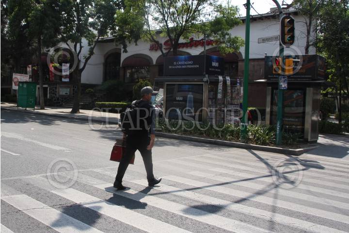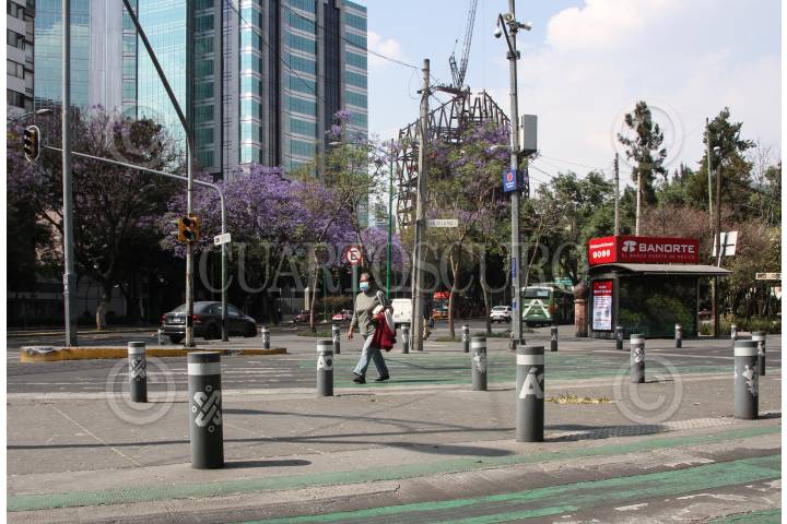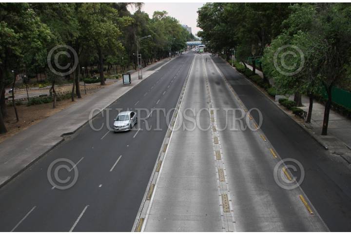 Avenida insurgentes se muestra con poca afluencia de personas por la merge vía sanitaria en nuestro país.