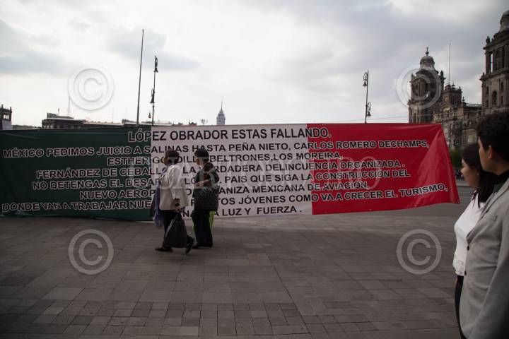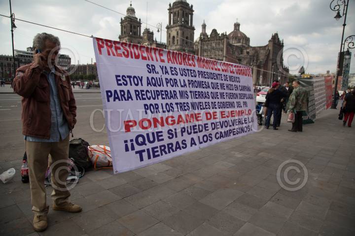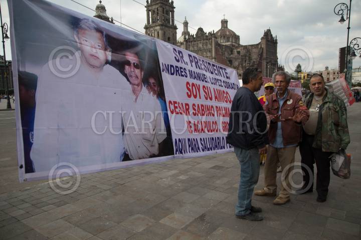 CIUDAD DE MÉXICO, 05DICIEMBRE2018.- Un ciudadano permanece frente a Palacio Nacional con 3 pancartas exigiéndole a Andrés Manuel López Obrador que cumpla una promesa que le hizo en campaña donde lo ayuda a recuperar sus tierras que le fueron despojadas supuestamente por integrantes del Partido Revolucionario Institucional (PRI) en Guerrero así como la petición de que castigue a personajes de la vida política por sus tropelías contras el pueblo mexicano. FOTO: ILSE HUESCA /CUARTOSCURO.COM