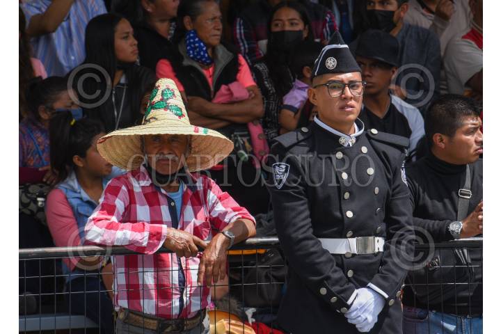 Aspectos del Desfile por el CCXII Aniversario de la Independencia de México realizado de la ciudad de Toluca en donde participaron 8 escoltas, 3 mil 379 elementos, 255 vehículos, siete carros alegóricos, 102 binomios equinos y 36 binomios caninos.