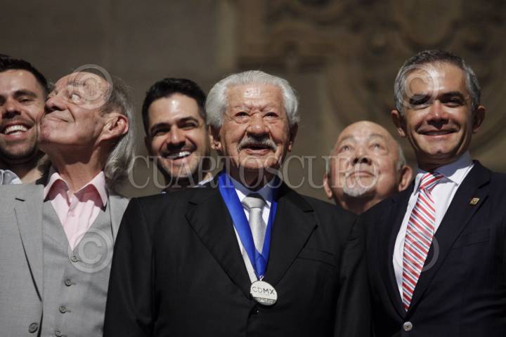 MÉXICO, D.F., 27FEBRERO2015.- El primer actor Ignacio López Tarso fue reconocido como Ciudadano Distinguido de la Ciudad por autoridades del GDF, el Jefe de Gobierno Miguel Ángel Mancera encabezo la ceremonia y se realizó en el Antiguo Palacio del Ayuntamiento. FOTO: MOISÉS PABLO /CUARTOSCURO.COM
