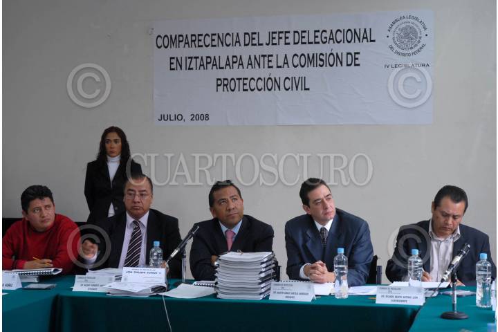 MEXICO, D.F., 07JULIO2008.- El delegado de Iztapalapa Horacio Martínez Meza compareció esta mañana ante la comisión de protección civil de la ciudad en la Asamblea Legislativa. Lo acompañaron los diputados Nazario Roberto Sanchez, Agustín Carlos Castilla Marroquin, y Ricardo Benito Antonio León. FOTO:FELIPE CASTELLANOS/CUARTOSCURO.COM