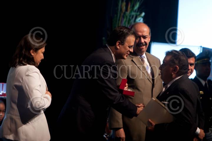 MÉXICO, D.F., 28JULIO2009.- Marcelo Ebrard jefe de gobierno del Distrito Federal, durante el festejo de los 150 años de la creación de Registro Civil, dicho festejo se realizo en el Teatro de la Ciudad, en este festejo el jefe de gobierno entrego reconocimientos a trabajadores del Registro Civil. FOTO: RICARDO CASTELAN/CUARTOSCURO.COM