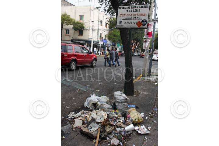 MÉXICO, D.F., 27JULIO2011.- A pesar de que existen letreros anunciando que se multara a quien tire basura en la calle, personas de la colonia Roma Norte, continúan tirando sus desechos en la vía pública. FOTO: SAÚL LÓPEZ/CUARTOSCURO.COM