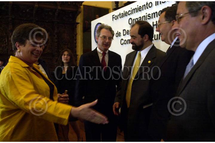 Marie Claire Acosta, subsecretaria para Derechos Humanos y Democracia de la Secretaria de Relaciones Exteriores, asistió a la Firma de Convenio de la Comisión Europea y la Federación Mexicana de Organismos públicos de Derechos Humanos (FMOPDH). Al acto asistieron también Nigel Evans y Emilio Alvarez Icaza, representante de la Unión Europea en México y tesorero de la FMOPDH. FOTO: Juan Pablo Zamora/CUARTOSCURO.COM