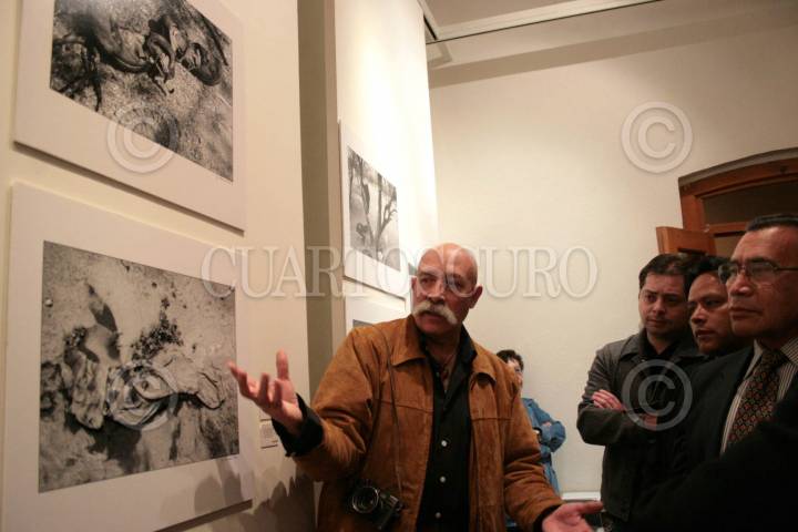 ZACATECAS, ZACATECAS 24FEBRERO2007.- El fotografo José Hernandez Claire muestra sus fotografias durante la inaguración de la exposición (Exodo nacional el rostro de la migracion en Mexico) realizada en la Fototeca de Zacatecas. FOTO: GUILLERMO MORENO/CUARTOSCURO.COM
