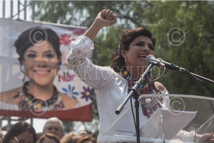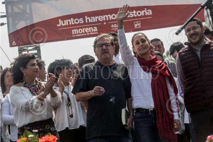 CIUDAD DE MÉXICO, 29ABRIL2018.- Clara Brugada arrancó su campaña a jefa delegacional de Iztapalapa acompañada de Claudia Sheinbaum, candidata a jefa de gobierno de la CDMX. En el acto estuvieron acompañadas por diversos actores políticos como, Paco Ignacio Taibo II, Gerardo Fernandez , y Marti Batres, entre otros. FOTO: TERCERO DÍAZ /CUARTOSCURO.COM