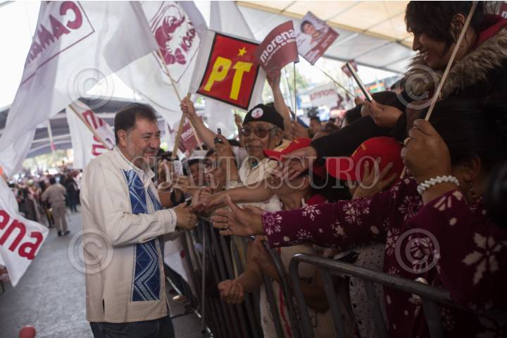 CIUDAD DE MÉXICO, 08JULIO2018.- Gerardo Fernández Noroña, actual senador electo por Morena, durante el mitin de celebración de Clara Brugada por ser electa alcalde de Iztapalapa. FOTO: TERCERO DÍAZ /CUARTOSCURO.COM