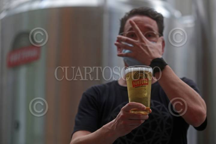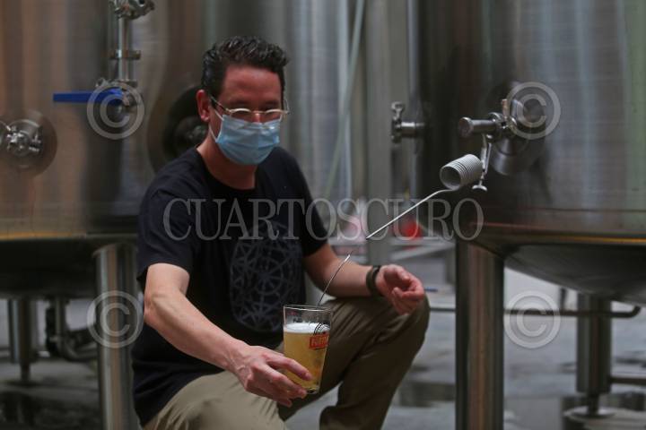 Joaquín López Orendain fundador y jefe de producción de una reconocida cervecería artesanal, sirve una cerveza este Día Internacional de la Cerveza.