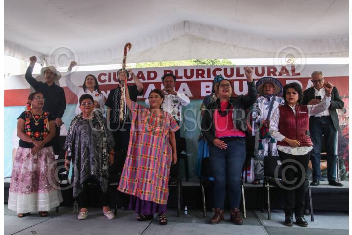 CIUDAD DE MÉXICO, 24ABRIL2024.- Clara Brugada candidata a la jefatura de Gobierno presentó en Plaza Garibaldi la propuesta “Ciudad Pluricultural”, en contra del racismo en la Ciudad. FOTO: ANDREA MURCIA /CUARTOSCURO.COM