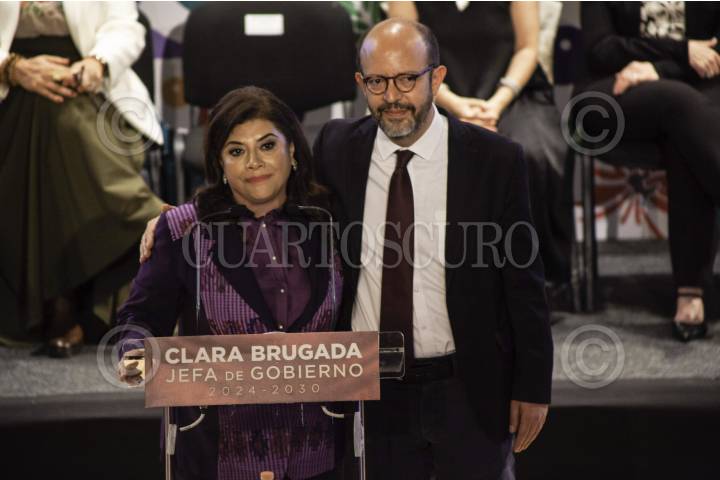 CIUDAD DE MÉXICO, 19AGOSTO2024.- Clara Brugada, jefa de gobierno electa presento a Inti Muñoz Santini, secretario de Vivienda como parte de su gabinete legal en el Colegio de San Ildelfonso. FOTO: ANDREA MURCIA /CUARTOSCURO.COM
