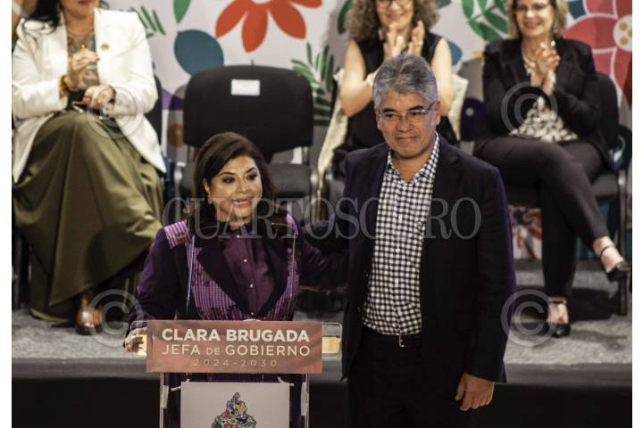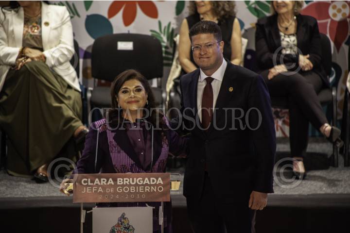 CIUDAD DE MÉXICO, 19AGOSTO2024.- Clara Brugada, jefa de gobierno electa presento a Pablo Vázquez Camacho, secretario de Seguridad Ciudadana como parte de su gabinete legal en el Colegio de San Ildelfonso. FOTO: ANDREA MURCIA /CUARTOSCURO.COM