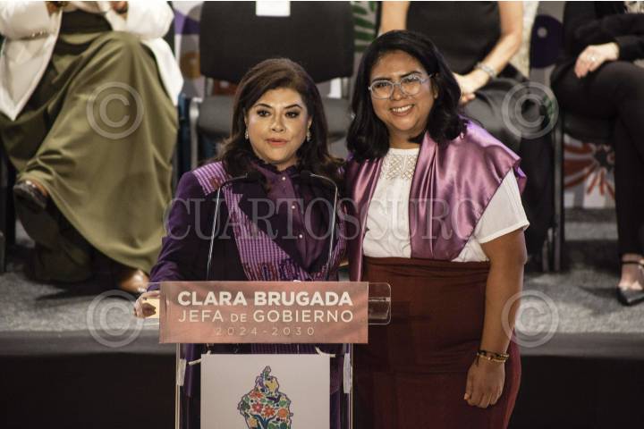 CIUDAD DE MÉXICO, 19AGOSTO2024.- Clara Brugada, jefa de gobierno electa presento a Nelly Antonina Juárez Audelo, secretaria de pueblos y barrios originarios y comunidades indígenas residentes como parte de su gabinete legal en el Colegio de San Ildelfonso. FOTO: ANDREA MURCIA /CUARTOSCURO.COM