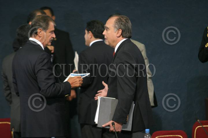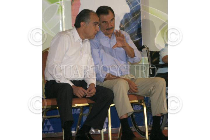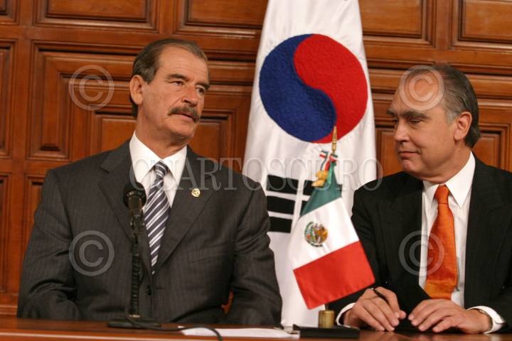 MEXICO, D.F. 09SEPTIEMBRE2005.- El presidente Vicente Fox y Fernando Canales Clariond, secretario de economia durante la firma de acuerdos comerciales entre México y Corea. FOTO: Nelly Salas/CUARTOSCURO.COM