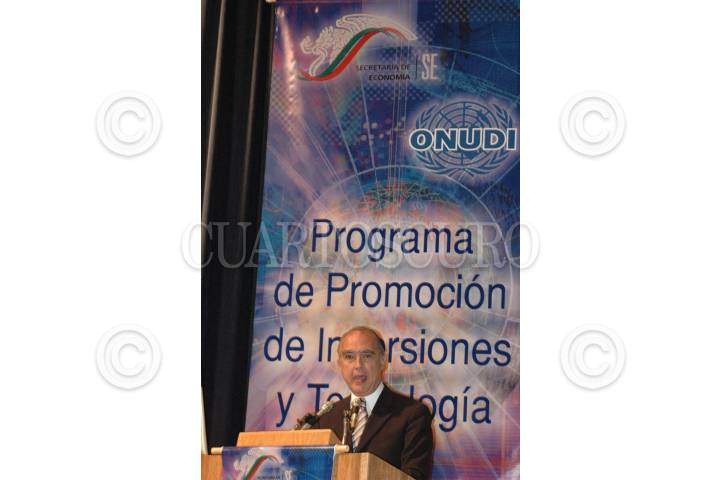 MEXICO, D.F. 20JULIO2005.- Fernando Canales Clariond, secretario de economía , durante la presentación del Programa de Promoción de Investigaciones y Tecnología en apoyo con la Organización de las Naciones Unidas para el Desarrollo Industrial ( ONUDI ). FOTO: Osvaldo Aguilar/CUARTOSCURO.COM