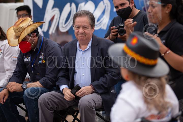 José Isabel Trejo, diputado federal por el PAN, durante mitin de Claudia Anaya, candidata a la gubernatura del estado por la coalición "Va por Zacatecas", en la comunidad de San José de Lourdes.