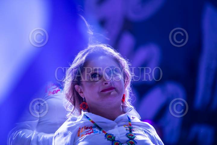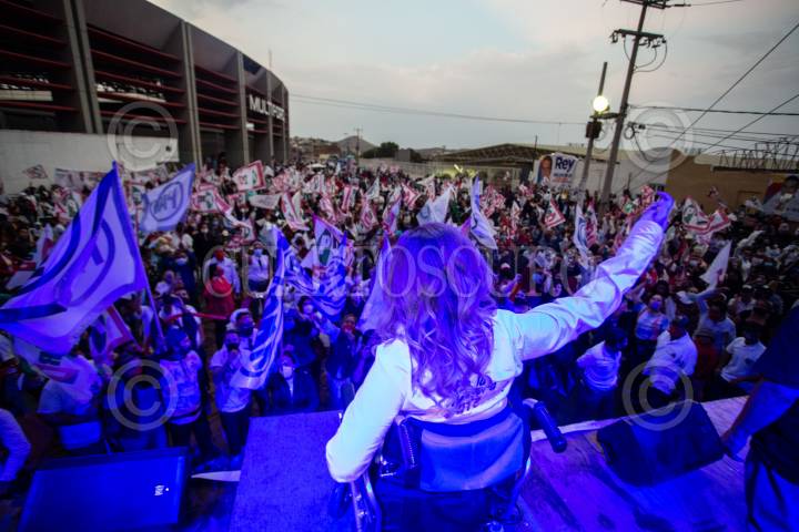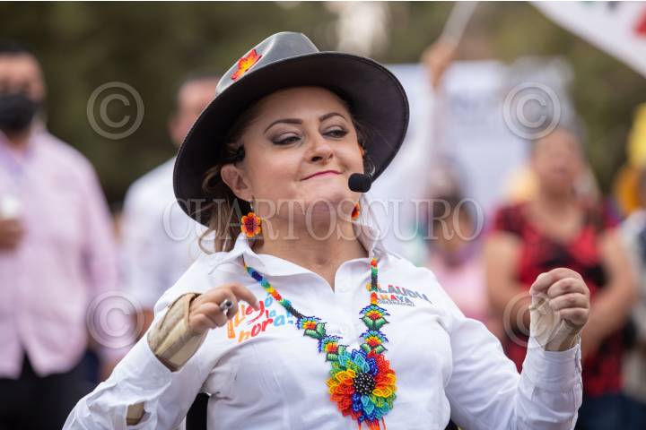 Claudia Anaya, candidata a la gubernatura, durante su cierre de campaña.
