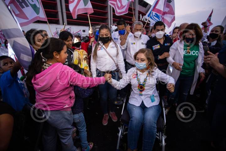 Simpatizantes de Claudia Anaya, durante mitin de cierre de campaña.