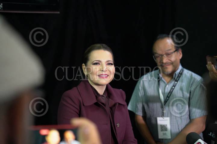 GUADALAJARA, JALISCO, 17MARZO2024.- Claudia Delgadillo, candidata a la gubernatura de Jalisco por la coalición Sigamos Haciendo Historia, durante el primer debate con sus contrincantes políticos. FOTO: CUARTOSCURO.COM