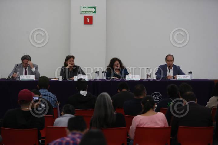 Los integrantes del GIEI, Francisco Cox, Ángela María Buitrago, Claudia Paz y Paz, y Carlos Marín Buitrago, ofrecieron una conferencia de prensa para hablar sobre la extensión de un mes su estancia en el país y así continuar con sus investigaciones