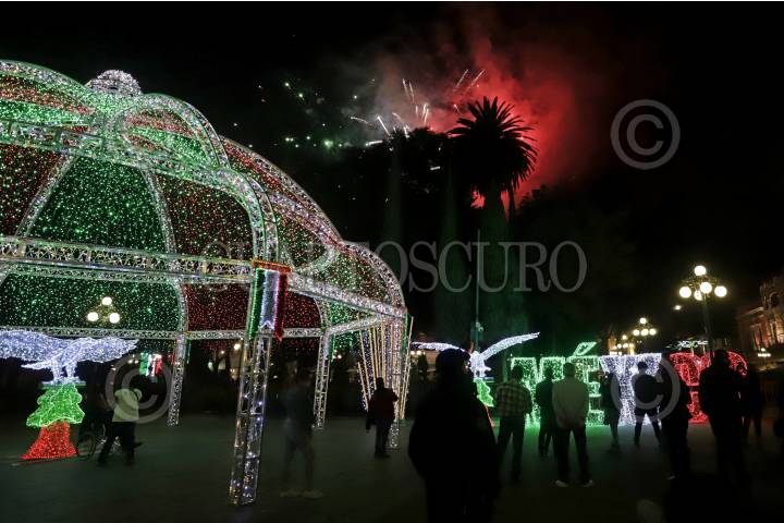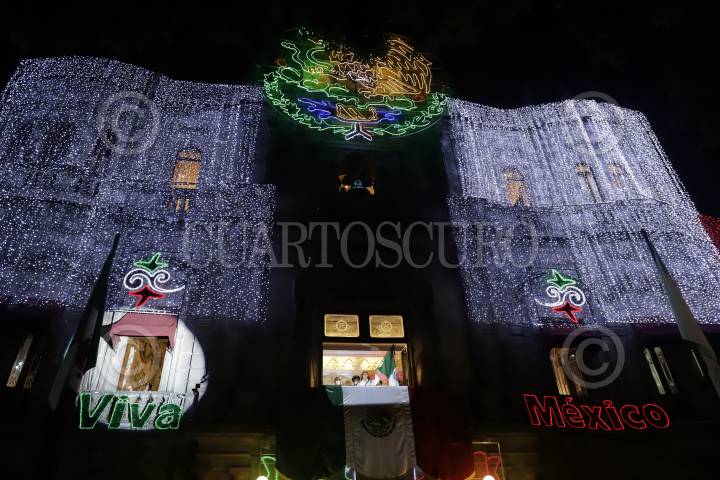 La presidenta municipal Claudia Rivera da el tradicional Grito de Independencia desde el balcón principal del Palacio Municipal.