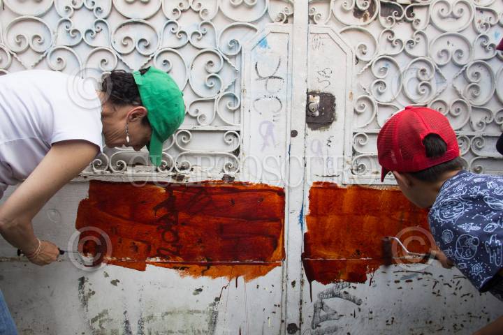 CIUDAD DE MÉXICO 09MARZO2019.- La jefa de Gobierno, Claudia Sheinbaum pintó un zaguán, como parte de las actividades del Sábado de Tequio en la colonia Anahuac, alcaldía Miguel Hidalgo. FOTO: GUADALUPE HERRERA/CUARTOSCURO.COM