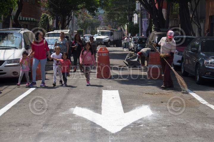 CIUDAD DE MÉXICO, 09MARZO2019.- Terminaron de pintar una calle como parte de las actividades del Sábado de Tequio en la colonia Anahuac, alcaldía Miguel Hidalgo. FOTO: GUADALUPE HERRERA /CUARTOSCURO.COM