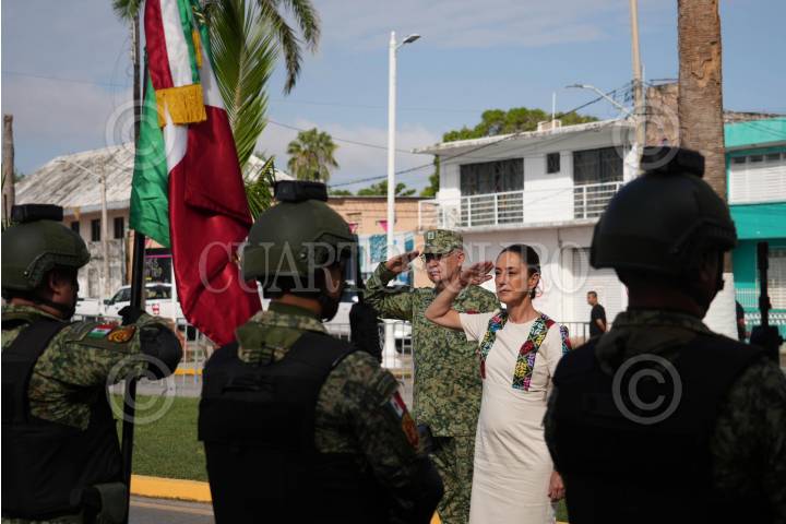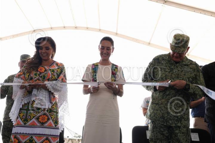 CHETUMAL, QUINTANA ROO, 15DICIEMBRE2024.- Rosa Icela, secretaria de Gobernación; Mara Lezama, gobernadora de Quintana Roo; Claudia Sheinbaum, Presidenta de México, y Ricardo Trevilla Trejo, secretario de la Defensa, celebraron el primer aniversario e inauguran los tramos 6 y 7 del Tren Maya, una hazaña histórica lograda en tan solo 4 años. La mandataria federal destacó que esta emblemática obra hoy completa su circuito de mil 554 kilómetros de esperanza, impulsado por el entonces presidente Andrés Manuel López Obrador. En el evento realizado frente a la Bahía de Chetumal, con la asistencia de las y los gobernadores por donde transita el Tren Maya ahí anunció la construcción de los trenes México – Nuevo Laredo, México – Nogales. Para significar y dejar testimonio de este aniversario, la presidenta Claudia canceló un timbre postal y cortó el listón inaugural de los tramos 6 y 7 del Tren Maya. FOTO: PRESIDENCIA/CUARTOSCURO.COM/CUARTOSCURO.COM