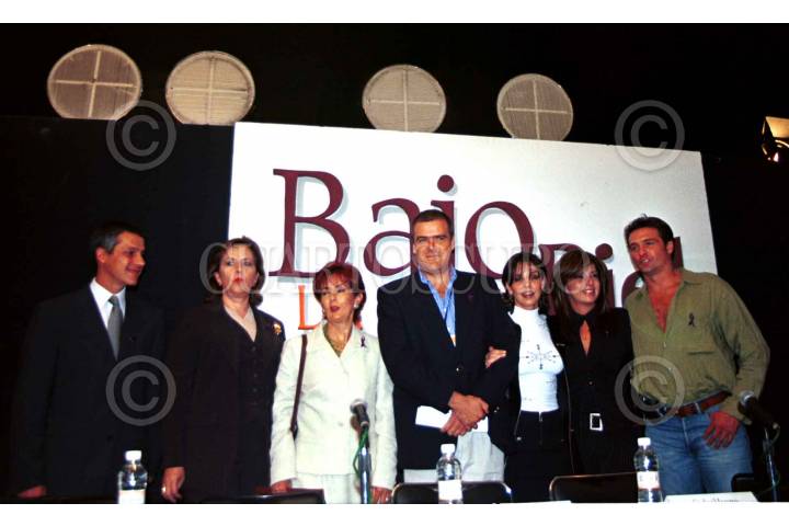 La producción de la novela Bajo la Misma Piel, dió a conocer la campaña que promoverán en contra de la violencia a la mujer. Claudio X González, Patricia Espinoza Torres, Ana Teresa Aranda Orozco, Carlos Moreno (productor), Marta Carrillo y Juan Soler. FOTO: Moisés Pablo/CUARTOSCURO.COM