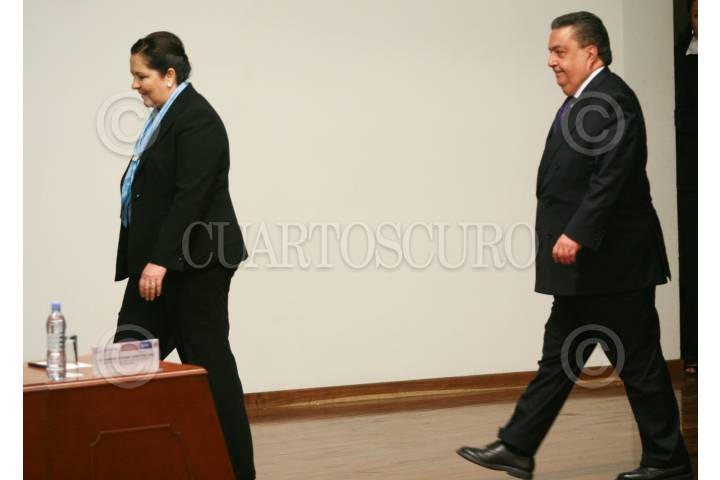 MÉXICO, D.F., 05DICIEMBRE2008.- Ana Teresa Aranda Orozco, Subsecretaría de Población e Identificación Personal y Fernando Gómez Mont, Secretario de Gobernación, presidieron la firma del convenio de acciones entre la SEGOB y Asociación Nacional del Notario Mexicano para el uso de la Clave Única de Registro de Población. FOTO: MOISÉS PABLO/CUARTOSCURO.COM