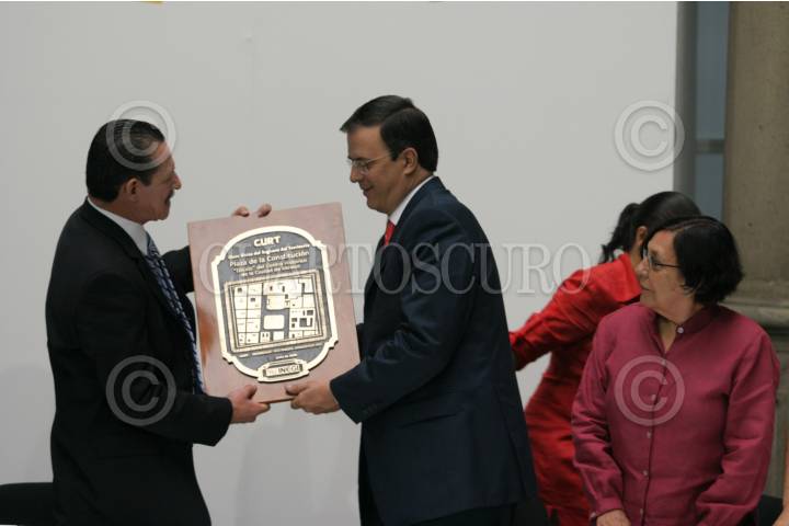 MÉXICO, D.F., 10JUNIO2009.- Marcelo Ebrard Casaubon jefe de gobierno capitalino, durante la entrega de la Clave Única de Registro Territorial (CURT) del primer cuadro de la capital, que permitirá tener una ubicación geográfica sobre el Zócalo capitalino. FOTO: RICARDO CASTELAN/CUARTOSCURO.COM