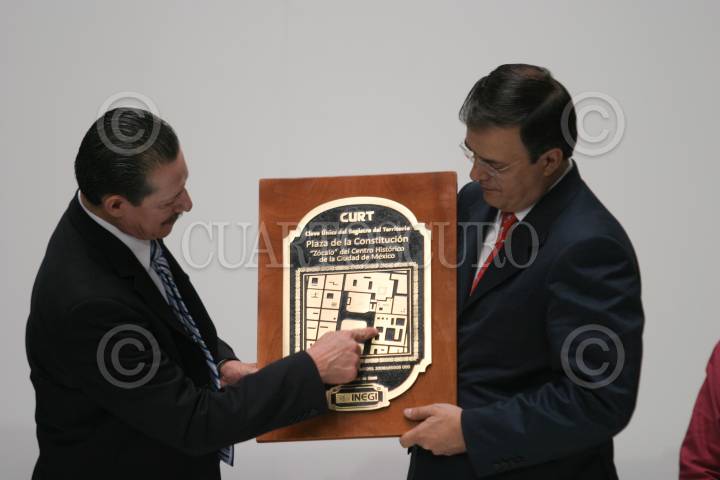 MÉXICO, D.F., 10JUNIO2009.- Mario Alberto Reyes Ibarra, intervención el director de Geografía del INEGI, Marcelo Ebrard Casaubon gefe de gobierno capitalino y Alejandra Moreno Toscano, durante la entrega de la Clave Única de Registro Territorial (CURT) del primer cuadro de la capital, que permitirá tener una ubicación geográfica sobre el Zócalo capitalino. FOTO: RICARDO CASTELAN/CUARTOSCURO.COM