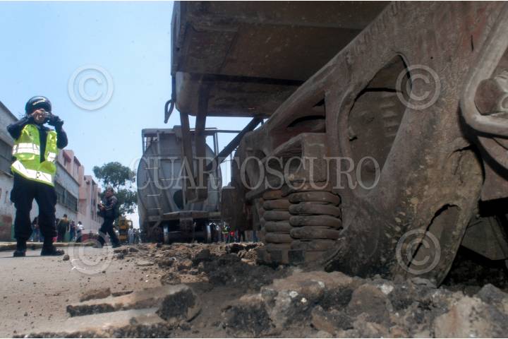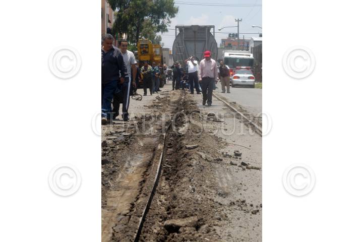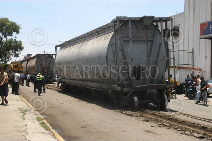 MÉXICO, D.F., 15JULIO2009.- Tres Vagones del tren con 120 toneladas de trigo, se salio de la vía cuando circulaba en el tramo que se ubica sobre la calle de Clave casi al cruce johan Sebastian Bach en la colonia Industrial perímetro de la Gustavo A. Madero. Debido al mal estado y falta de mantenimiento de las vías en todo el país FOTO: LUIS CARBAYO/CUARTOSCURO.COM