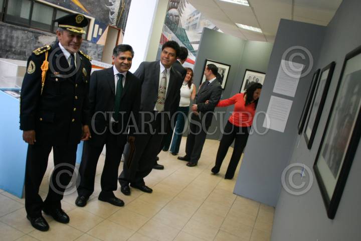 MÉXICO, D.F., 12AGOSTO2010.- El General, José Javier Hernández Esparza, director de instrucción policial y Alejandro Rojas Fernández, director pedagógico del Instituto Técnico de Formación Policial (ITFP), recorren la exposición fotográfica de Gabriel García Márquez titulada "Cien Años de Soledad", como parte de la Jornada Cultural que la Secretaría de Seguridad Pública del Distrito Federal (SSPDF), junto con la Secretaría de Cultura del DF realiza para fomentar la cultura desde el reclutamiento de elementos de la SSPDF. FOTO: MISAEL VALTIERRA/CUARTOSCURO.COM