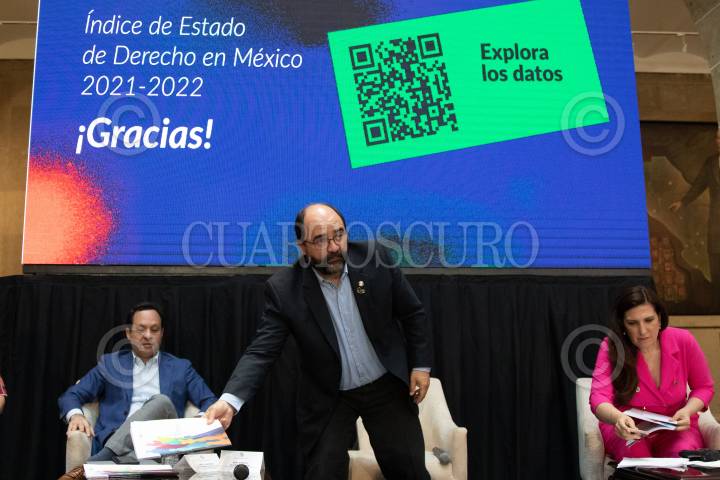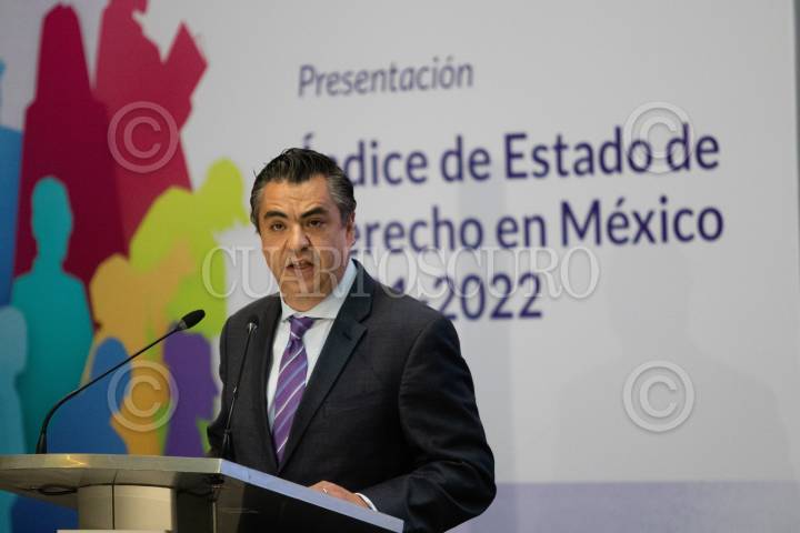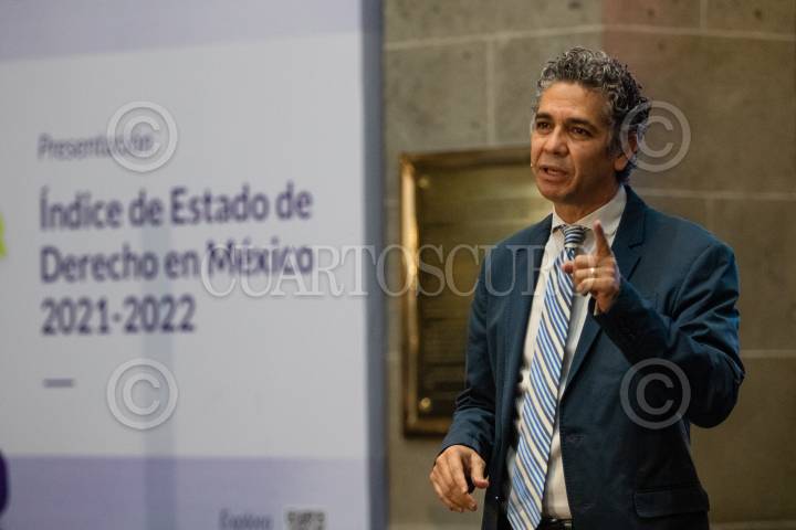 Alejandro Ponce, Jefe de Investigación del World Justice Project (WJP), durante la presentación del Índice de Estado de Derechos en México 2021-2022.