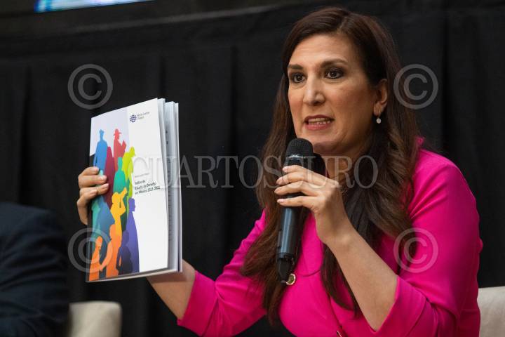 La senadora panista Kenia López Rabadán durante la presentación del Índice de Estado de Derechos en México 2021-2022.
